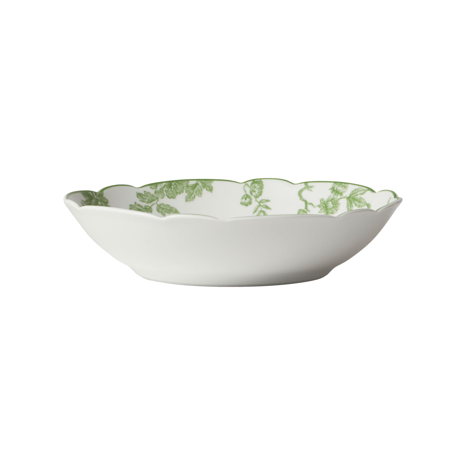 Das hübsche Albertine-Geschirr von Bernardaud ist quintessenziell französisch. Auf edlem Limoges Porzellan in geschwungenen Formen zeigt ein klassisches Toile-de-Jouy-Muster in Retrogrün Szenen einheimischer Vögel, die sich im Bäumen und Brombeerranken tummeln. Diese pastoralen Motive sind der Inbegriff des gehobenen Landhausstils: Anmutig zeitgemäß, inspiriert von der Vergangenheit.