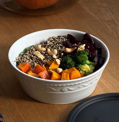 Sie möchten Ihr Mittagessen in die Mikrowelle schieben können, ohne es vorher umzufüllen? Dann sollten Sie darauf achten, dass mindestens die Schale mikrowellensicher ist. Wir können an dieser Stelle ganz besonders die To Go Schalen von KPM Berlin empfehlen. Diese hübschen Porzellanschalen sehen auf dem Tisch echt edel aus – und reisen doch dank auslaufsicherem Deckel sicher in Ihrer Tasche mit. Das Beste aus beiden Welten!