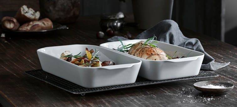 Das Innere einer Tarte, von der knusprigen Teighülle abgesehen, ist im Grunde auch ein Auflauf. Ob rund oder eckig – Tarteformen haben mit ihrem gewellten Rand einen besonderen Look. Und in weißem Porzellan sehen sie sehr edel aus. Perfekt für eine luxuriöse Schokotarte oder eine rustikale Quiche Lorraine.