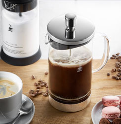 Der Duft von frisch gebrühtem Kaffee am frühen Morgen kann durch nichts übertroffen werden. Bereits bevor die Tasse Ihre Lippen berührt, setzen Sie damit die Stimmung für den gesamten Tag. Umso besser, wenn währenddessen im Hintergrund keine laute Kaffeemaschine brummt. Mit einer French Press können Sie ohne großen Aufwand schnell hervorragenden Kaffee zubereiten. Ganz ohne komplizierte Handgriffe oder teures Equipment. Und mit Bonus Pariser-Café-Flair!