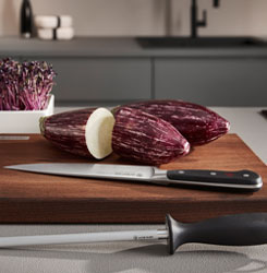 In der Küche gibt es viele Arbeiten, für die Sie Messer brauchen. Gemüse schälen und schneiden, Fleisch filetieren, Kräuter hacken… All diese Dinge gehen gleich viel leichter und schneller, wenn Sie über das richtige Messer verfügen. Unterschiedliche Klingenformen und Schneiden passen Küchenmesser an bestimmte Aufgabenbereiche an und sorgen dafür, dass Sie im wortwörtlichen Handumdrehen Ihre gewünschten Ergebnisse erreichen.