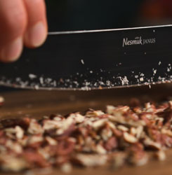Schneiden ist nicht alles, für das Messer gemacht sind. Aber Wiegemesser sind speziell für’s Hacken geschaffen! Mit ihrer geschwungenen Klinge, eingefasst von zwei Griffen, können Sie Kräuter und andere Zutaten wie beispielsweise Nüsse schnell zerkleinern. Dabei sparen Sie sich nicht nur Zeit, sondern auch Risiko, denn die Verletzungsgefahr ist beim Hacken mit einem Wiegemesser geringer.
