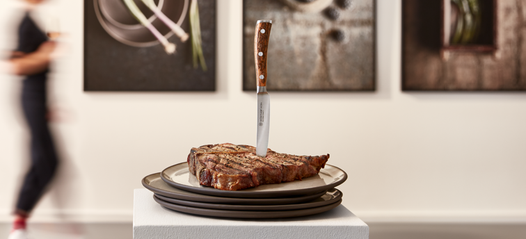 Ein gutes Steakmesser gleitet durch Ihr Steak wie durch Butter. Das erspart Ihnen nicht nur wiederholtes Sägen mit einem stumpferen Besteckmesser, sondern macht die Erfahrung insgesamt viel luxuriöser. Eine besondere Form hat das Steakmesser nicht nur, weil der Griff schmaler ist als der so manchen Küchenmessers, sondern auch wegen der nach oben geschwungenen Spitze. Diese erlaubt es Ihnen, Ihr Steak auf dem Teller zu schneiden, ohne dass die Spitze über das Porzellan kratzt.