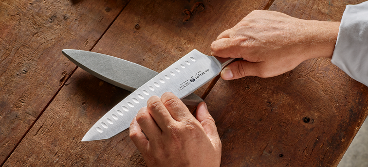 Diese Vorteile gelten jedoch hauptsächlich für nassere Gemüsesorten und bereits filetiertes Fleisch. Bei trockenem Schneidgut gibt es kaum Vorteile. Dafür kann der Kullenschliff das Klingenblatt ein wenig schwächen. Das fällt im normalen Gebrauch nicht auf, bedeutet aber, dass Sie ein solches Messer härteren Belastungen wie zum Beispiel Knochen nicht aussetzen sollten. Wenn Sie einen robusten Allrounder suchen, dann sollten Sie sich für ein Messer mit glattem Klingenblatt entscheiden. Für sanfte Präzision hingegen ist ein Santokumesser mit Kullenschliff genau richtig.